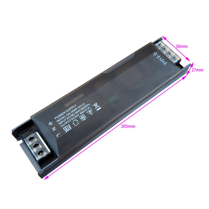 1、24V200W Konstantspannungs-halbgefülltes Slim-LED-Schaltnetzteil, neuartiges Design, verschleißfest und langlebig.