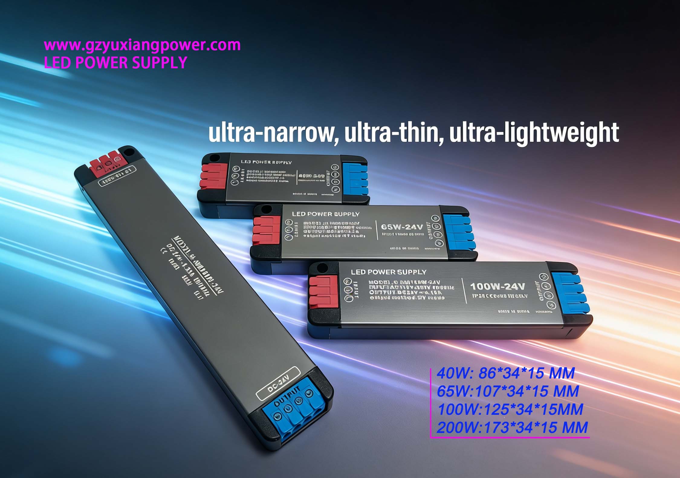 1、Die gesamte Serie verfügt über ein ultradünnes, längliches Design, nur 15 mm dick und 34 mm breit. Das kleinste 40-W-Modell ist nur 86 mm lang und das größte 200-W-Modell ist nur 173 mm lang, wirklich „klein genug, um in Ihre Handfläche zu passen“! Es lässt sich problemlos in schmale Räume wie Deckenlichtrinnen, Schränke, Weinschränke, Lichtkästen und Spanndecken einbetten und ist vollständig verborgen, ohne zu stören, wodurch die Gesamtästhetik des Dekors erhalten bleibt. Praktisch und platzsparend erfüllt es perfekt die Anforderungen an die verdeckte Stromversorgung sowohl im Wohn- als auch im Gewerbebereich.